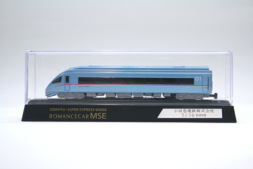 ディスプレイに最適な6000個限定仕様!ダイキャストMSE(ケース入り) 価格: 1,900円 レビュー評価: 5.0 レビュー数:1 細部にこだわったディスプレイモデルです。本体は1,050円のものと同じですが、屋根の塗装を限定カラーに変更しています。付属のネジを交換すれば、台座から取り外すことが出来ます。シリアルナンバーつきケース付属。この商品はダイキャスト製のミニカーで、ディスプレイ専用モデルです。走行することは出来ません。縮尺は約140分の1で、鉄道模型のNゲージよりやや大き目となっています。※Nゲージ鉄道模型の線路には乗りますが、走らせることは出来ません。 また、電流の流れている線路に載せると、ショートするため大変危険です。絶対におやめください。 走行をご希望されるお客様は「鉄道模型」「Bトレインショーティ」をご利用 Supported by 楽天ウェブサービス |
